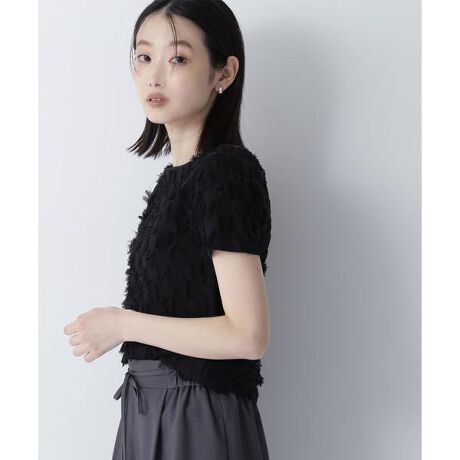 ジャガード編みをカットしてフリンジの編地を表現したニットです。コンパクトなサイズ感や袖丈が大人っぽく、カジュアルな雰囲気とのバランスが良いデザイン。落ち着いたカラー展開なので、デザイン性のあるニットでもシンプルな印象で着こなしやすいです。ワイドパンツやデニムパンツとのコーディネートがおすすめです。<素材>ジャガード編みをカットしてフリンジを作ったニットです。肌当たりの良い糸を使用しています。<詳細>仕様・開閉なし裏地・なし透け感・なし / 光沢・なし / 伸縮性・あり生地の厚さ・普通※モデルの着用画像の場合、光の当たり具合により、実際の色味と異なって見えることがございます。色味は、商品単体の画像をご参照ください。