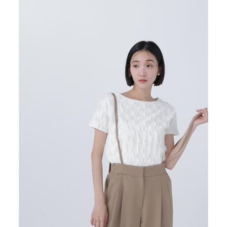 ジャガード編みをカットしてフリンジの編地を表現したニットです。コンパクトなサイズ感や袖丈が大人っぽく、カジュアルな雰囲気とのバランスが良いデザイン。落ち着いたカラー展開なので、デザイン性のあるニットでもシンプルな印象で着こなしやすいです。ワイドパンツやデニムパンツとのコーディネートがおすすめです。<素材>ジャガード編みをカットしてフリンジを作ったニットです。肌当たりの良い糸を使用しています。<詳細>仕様・開閉なし裏地・なし透け感・なし / 光沢・なし / 伸縮性・あり生地の厚さ・普通※モデルの着用画像の場合、光の当たり具合により、実際の色味と異なって見えることがございます。色味は、商品単体の画像をご参照ください。