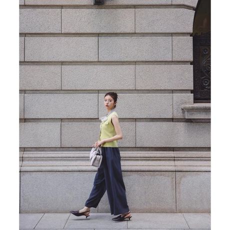 ウエストゴムでイージーにはけるワイドパンツ。肌離れするワイドシルエットで夏も涼しく着ていただけます。華奢な共地リボン付きで、優しくウエストマークしてくれるハイウエストデザイン。ゴムシャーリングとベルト端のフリルがトップスインした着こなしのポイントになります。<素材>サラリとしたタッチの合繊素材を使用。少しメランジ調で麻のような表面が夏見えする素材感です。<詳細>仕様・開閉なし裏地・なし透け感・なし / 光沢・なし / 伸縮性・ややあり生地の厚さ・普通※モデルの着用画像の場合、光の当たり具合により、実際の色味と異なって見えることがございます。色味は、商品単体の画像をご参照ください。