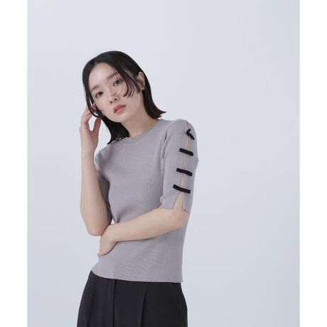 袖山にスリットとリボンをあしらったフェミニンなディテールが映えるニット。身頃はベーシックなサイズ感でコーディネートしやすく、ONにもOFFスタイルにもおすすめ。グレーカラーのみバイカラーリボンを付けています。<素材>さらっとした風合いのハイゲージニットです。<詳細>仕様・開閉なし裏地・なし透け感・なし / 光沢・なし / 伸縮性・あり生地の厚さ・普通※モデルの着用画像の場合、光の当たり具合により、実際の色味と異なって見えることがございます。色味は、商品単体の画像をご参照ください。