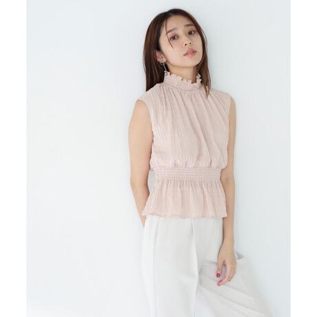襟にシャーリングをふんだんに寄せたネックデザインがポイントで、顔まわりを華やかに見せるブラウス。1枚着としてもジレやジャケットのインナーにも着回せるデザインです。ウエストにもシャーリングを入れたペプラムシルエットなので、ウエストマーク効果も期待。すっきりとしたストレートパンツやナロースカート合わせがおすすめです。<素材>表情のある素材感を使用しています。<詳細>仕様・開閉なし裏地・あり透け感・なし / 光沢・なし / 伸縮性・あり生地の厚さ・普通※モデルの着用画像の場合、光の当たり具合により、実際の色味と異なって見えることがございます。色味は、商品単体の画像をご参照ください。