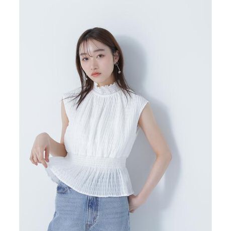 襟にシャーリングをふんだんに寄せたネックデザインがポイントで、顔まわりを華やかに見せるブラウス。1枚着としてもジレやジャケットのインナーにも着回せるデザインです。ウエストにもシャーリングを入れたペプラムシルエットなので、ウエストマーク効果も期待。すっきりとしたストレートパンツやナロースカート合わせがおすすめです。<素材>表情のある素材感を使用しています。<詳細>仕様・開閉なし裏地・あり透け感・なし / 光沢・なし / 伸縮性・あり生地の厚さ・普通※モデルの着用画像の場合、光の当たり具合により、実際の色味と異なって見えることがございます。色味は、商品単体の画像をご参照ください。