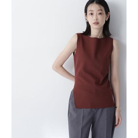 直線的なボートネックデザインで顔まわりをシンプルにまとめたニット。裾はサイドスリット入りで、適度な抜け感をプラスしながらアウトスタイルが様になるデザイン。ディテールをそぎ落とたミニマルなデザインなので、洗練されたムードで着ていただけます。<詳細>仕様・開閉なし裏地・なし透け感・なし / 光沢・なし / 伸縮性・あり生地の厚さ・普通※モデルの着用画像の場合、光の当たり具合により、実際の色味と異なって見えることがございます。色味は、商品単体の画像をご参照ください。