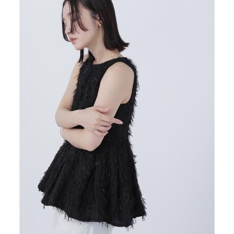<BLANC(ブラン)>今のほしいをここに。自分らしく、自由なスタイリングを楽しみたい。洗練されたCLASS感と“今”を感じるモードフェミニンなアイテムを提案します。ヘルシーなバランスに仕上げたアメリカンスリーブのペプラムトップス。装飾的なツイードは特別感があり、大人にぴったりなアイテムです。フレア部分はタックを入れてフォルム感のあるシルエットを演出。カジュアルなボトムスと合わせたMIXスタイルがおすすめです。<素材>毛足のある軽いサマーツイードを使用しています。<詳細>仕様・後ろファスナー裏地・あり透け感・なし / 光沢・なし / 伸縮性・なし 生地の厚さ・普通※モデルの着用画像の場合、光の当たり具合により、実際の色味と異なって見えることがございます。色味は、商品単体の画像をご参照ください。