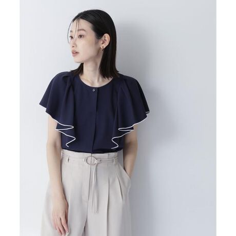 袖先にバイカラーメロウを効かせたONスタイルにぴったりなブラウス。ゆったりとしたフレアスリーブなので気になる二の腕を隠してくれます。肩はタックでボリュームを出すことで、きれいなフレアラインをキープ。首元はワンポイントでボタンを付けています。<素材>落ち感のあるキレイめジョーゼット素材を使用しています。<詳細>仕様・前ボタン裏地・なし透け感・なし / 光沢・なし / 伸縮性・なし 生地の厚さ・普通※モデルの着用画像の場合、光の当たり具合により、実際の色味と異なって見えることがございます。色味は、商品単体の画像をご参照ください。