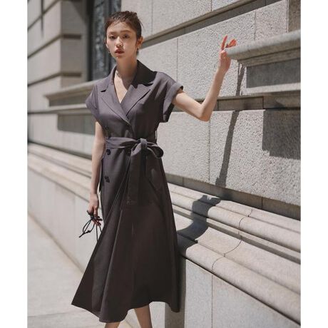 甘さを抑えつつ抜け感のあるハンサムレディなトレンチワンピースです。やや立ち上がった襟や太めのベルテッドデザインの辛ディテールに、抜け感のある襟開きやフィット&フレアシルエットで女性らしいバランスの取れたデザイン。袖はフレンチスリーブで二の腕をカバーします。裾は奥で縫われているため、下着や脚が見えることなく着ていただけます。<素材>麻のようなタッチの控えめなメランジ見えの素材を使用。ドライタッチながらきちんと厚みがありキレイにシルエットが出る素材感です。<詳細>仕様・前ボタン※モデルの着用画像の場合、光の当たり具合により、実際の色味と異なって見えることがございます。色味は、商品単体の画像をご参照ください。