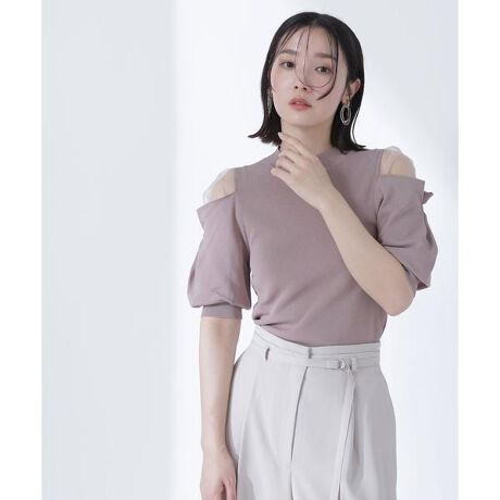 襟はすっきりとしたモックネックデザインでボディはコンパクトめに仕上げたニット。袖山はシアー素材をレイヤードドッキングしているため、着るだけでヘルシーな肌見せが叶います。袖のニット部分はタックを寄せたパフスリーブで、フェミニンな印象を演出。身頃はフラットな編地なのでインするとすっきりと着ていただけます。<素材>キレイな表面感のドライタッチの糸を使用。身頃は総針編みですっきりと編み立てています。袖はシアーオーガンジー素材をレイヤードしています。<詳細>仕様・開閉なし裏地・なし透け感・ややあり / 光沢・なし / 伸縮性・あり 生地の厚さ・普通※モデルの着用画像の場合、光の当たり具合により、実際の色味と異なって見えることがございます。色味は、商品単体の画像をご参照ください。