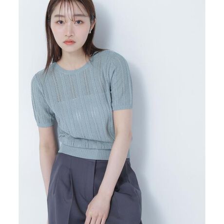 透かし柄のサマーケーブル編みがポイントのニットプルオーバー。華奢な編地にコンパクトなサイズ感なので、フレアスカート合わせでキレイめにも、パンツ合わせでカジュアルにも着回せるデザイン。シンプルなクルーネックにショート丈のシルエットでジャンスカのインナーにもおすすめです。<素材>リネンタッチの糸でさらっとした肌触りです。透かし編みとケーブル編みを組み合わせた編地です。<詳細>仕様・開閉なし裏地・なし透け感・ややあり / 光沢・なし / 伸縮性・あり生地の厚さ・普通※モデルの着用画像の場合、光の当たり具合により、実際の色味と異なって見えることがございます。色味は、商品単体の画像をご参照ください。