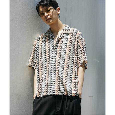総柄のデザインが魅力のショートスリーブシャツ。独特のレース柄が織り成すアブストラクトなパターンが、シンプルなシャツに個性と華やかさをプラスします。
