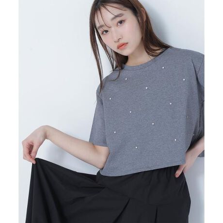コンパクトな丈感でカジュアルにもフェミニンにもスタイリングできるTシャツ。シンプルなアイテムに華やかなビジュー調をあしらったデザインで、服選びに悩まず着ていただけます。ドットのように配置されたビジュー調で着こなしやすく、コーディネートに合わせやすいベーシックなカラーも魅力です。<素材>コットンをきれいめに仕上げる加工を入れた天竺素材を使用。<詳細>仕様・開閉なし裏地・なし透け感・なし / 光沢・なし / 伸縮性・あり生地の厚さ・普通※モデルの着用画像の場合、光の当たり具合により、実際の色味と異なって見えることがございます。色味は、商品単体の画像をご参照ください。