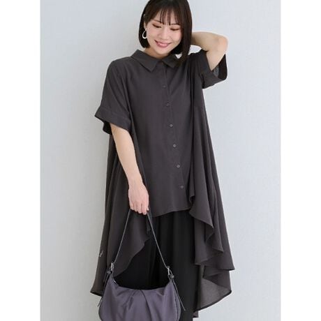 自然な揺らめきを演出するイレヘムデザインが目を惹くシャツワンピース