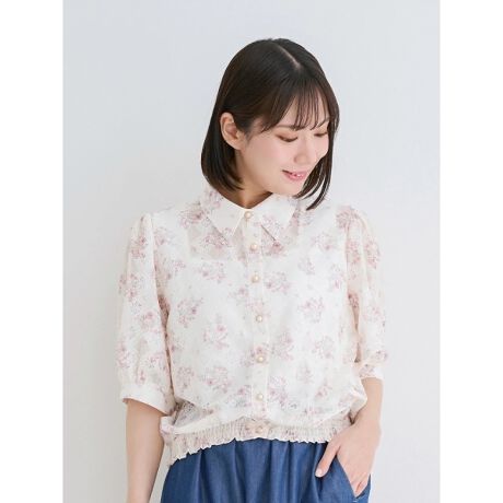 小花柄カットレースブラウス