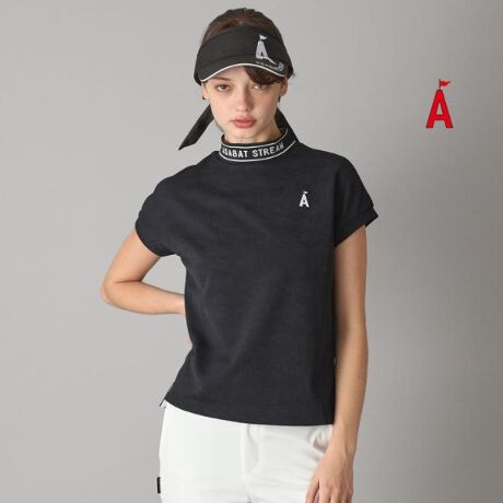 上品なジャガード織りでロゴをあしらった、洗練されたレディースモックネックプルオーバー。