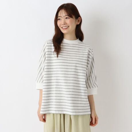 天竺 ボーダーUV加工 6分袖プルオーバー