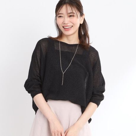 少し甘めの編地でレイヤードを楽しんでいただけるニットは、日除けにもなり夏まで着ていただけます。