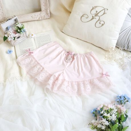 裾にはふんだんにストレッチレースを使用して、ポイントでリボンとスリットをあしらったキュートなスタイルに。より世界観をお楽しみいただける、お揃いのカップ付キャミソールとのコーディネートもおすすめです。