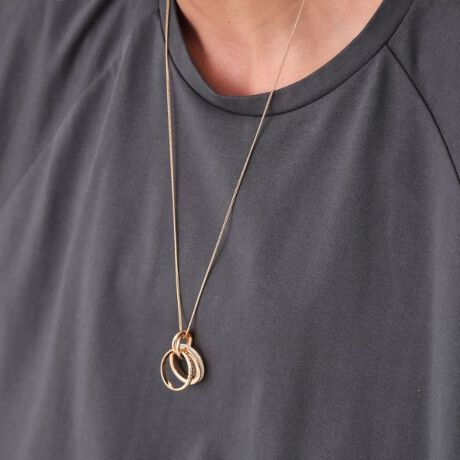 カラーエポとメタルのダブルリングが魅力のロングネックレス。