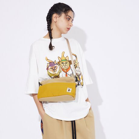 メインポケット内に3ルーム、フロントパケットを1つ備えたシンプルなショルダーバッグ。