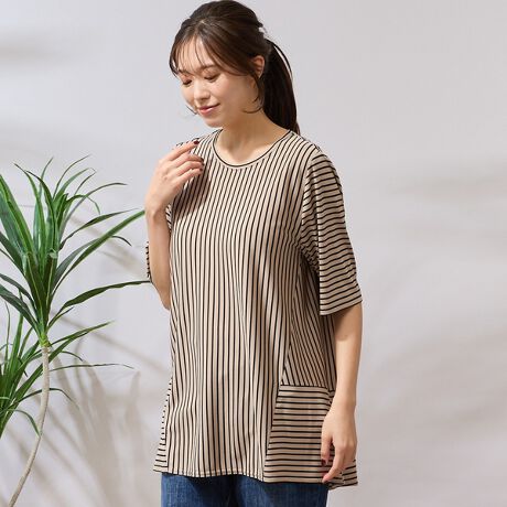 ■着やせ効果ありの切り替えデザインが嬉しい、ボーダートップス■
