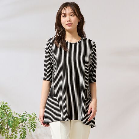 ■着やせ効果ありの切り替えデザインが嬉しい、ボーダートップス■