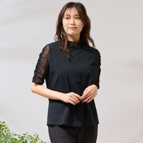 【手洗いOK】チュール配色袖ギャザーインナートップ