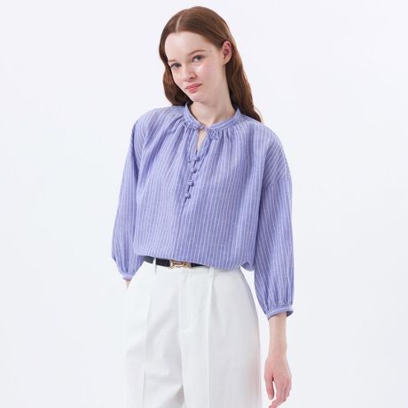 <ギャザーをふんだんにあしらったリネンミックスブラウス>
