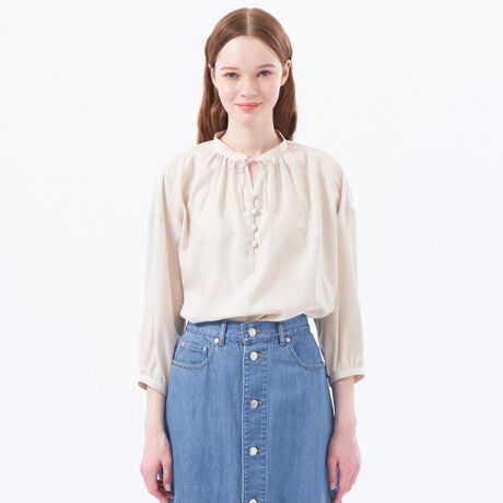 <ギャザーをふんだんにあしらったリネンミックスブラウス>