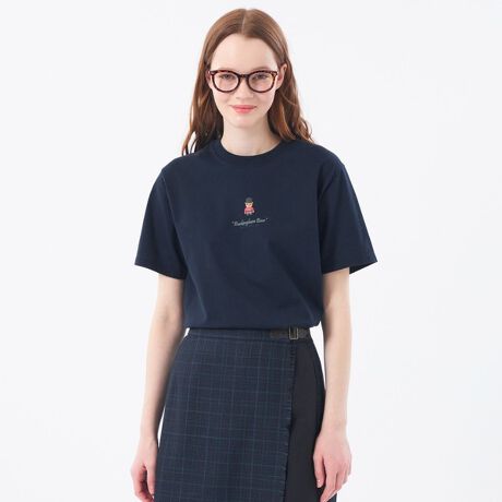 フロント中央に小さめのBUCKINGHAM BEARとロゴプリントを配した、ベーシックなTシャツカットソー。