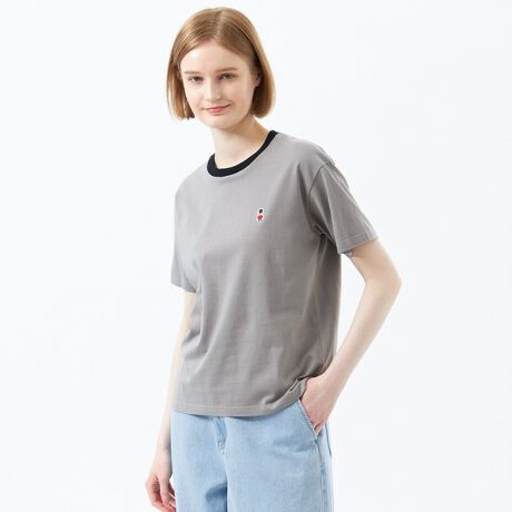 襟元のバイカラーがワンポイントのベーシックな半袖Tシャツ。