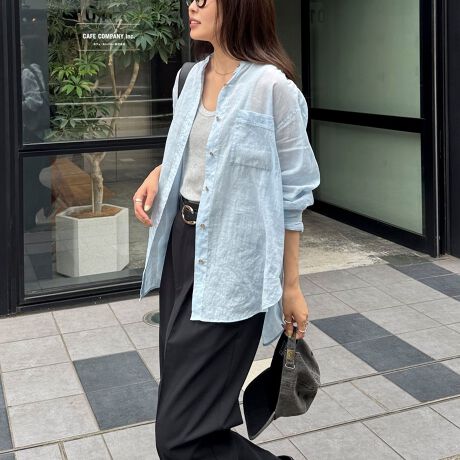大人っぽい雰囲気のラミーバンドカラーシャツ