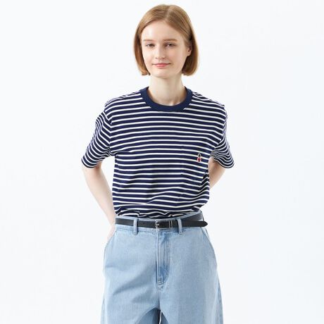 ベーシックな半袖のボーダーカットソー。