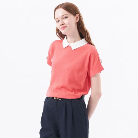 <バイカラー襟がポイントのニットポロ>