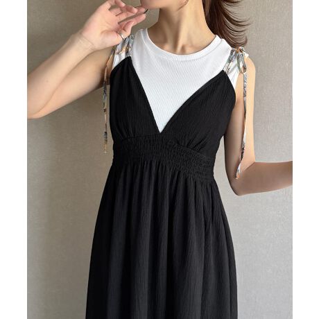 【肩リボン取り外し可】配色リボンシャーリングキャミワンピース