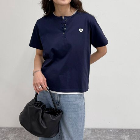 ハートFR刺繍が映えるヘンリーTシャツ