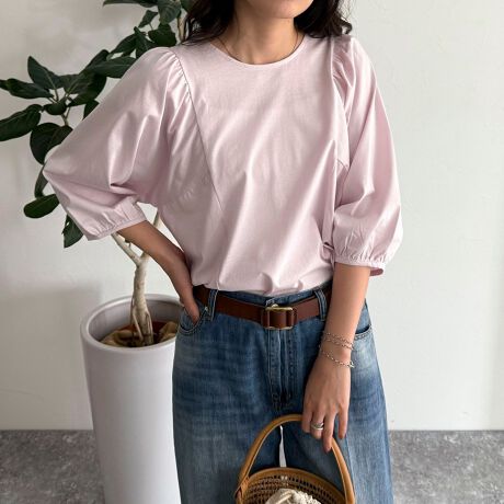 シルケット袖ギャザーカットソーブラウス