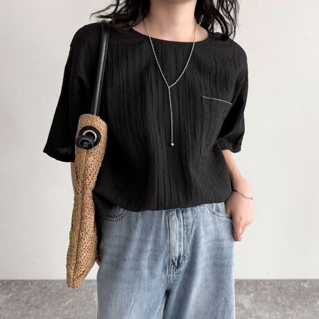 ・涼しげな素材感がシーズンムードを高めてくれるTシャツブラウスです