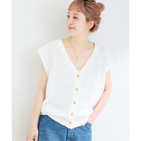 ナチュラル感ある糸を天竺編みにしたニットベスト。