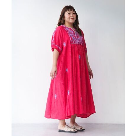 【大きいサイズ】モリっとラクノー刺繍OP