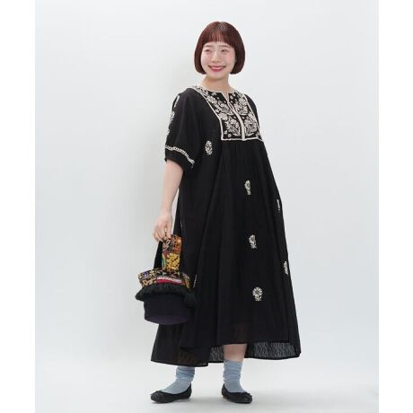 胸元のヨークに施したラクノウ刺繍の素朴な風合いがこのデザインを際立たせ女性らしい印象に!
