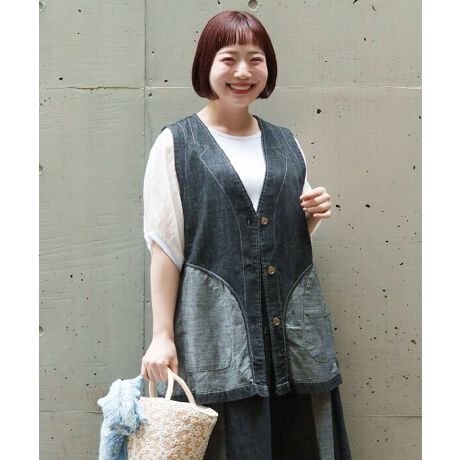 【大きいサイズ】デニムの裏側ジレー