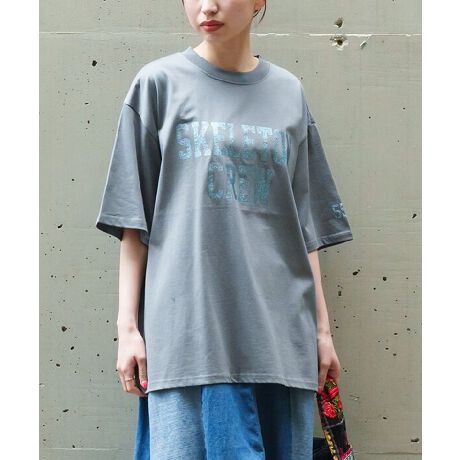 キラキラなグリッタープリントがアクセントになった半袖Tシャツです