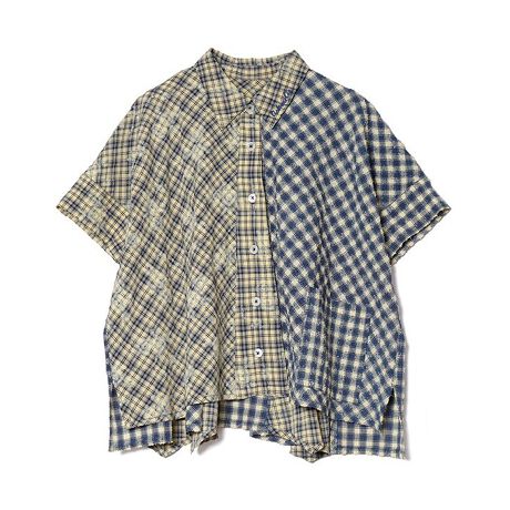 プリント入りのチェック生地と細かくループが出たふわふわとしたチェック生地をMIXしてシャツを作りました。