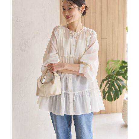 シアーティアードロングブラウス/チュニック