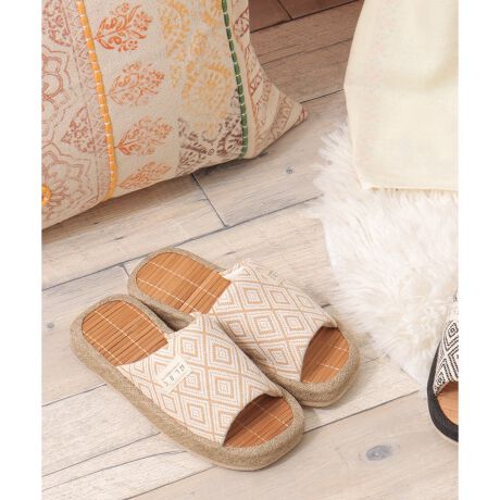 [型番:30580647]細めの竹をすだれのように繋いで作った、見た目にも涼しげなスリッパ。竹は制菌、抗菌防臭、消臭効果のある天然素材です。【素材】中敷きに竹を使用しており、べたつきにくい!【デザイン】ひんやりと心地よい竹インソールのスリッパ。