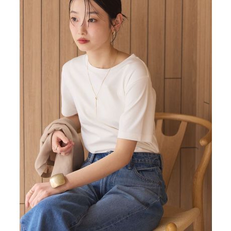 ベーシック5分袖Tシャツ レディース Tシャツ 半袖 綿素材 コットン 5分袖 体型カバー オフボディ ゆったり カジュアル トップス 春 夏 秋 インナー 無地 着回し 大人カジュアル シンプル トップス プルオーバー 30代 40代 レディース カジュアル 春夏 25SS AMERICAN HOLIC AMERICAN HOLIC アメリカンホリック アメホリ