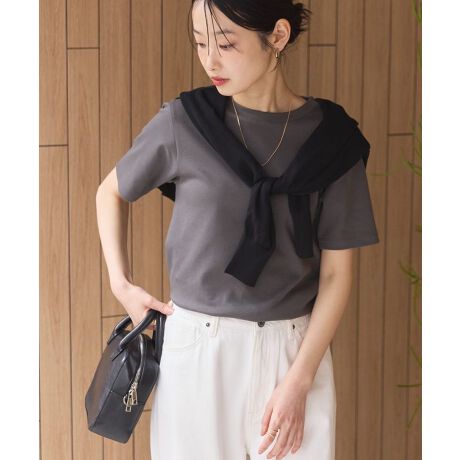 ベーシック5分袖Tシャツ レディース Tシャツ 半袖 綿素材 コットン 5分袖 体型カバー オフボディ ゆったり カジュアル トップス 春 夏 秋 インナー 無地 着回し 大人カジュアル シンプル トップス プルオーバー 30代 40代 レディース カジュアル 春夏 25SS AMERICAN HOLIC AMERICAN HOLIC アメリカンホリック アメホリ