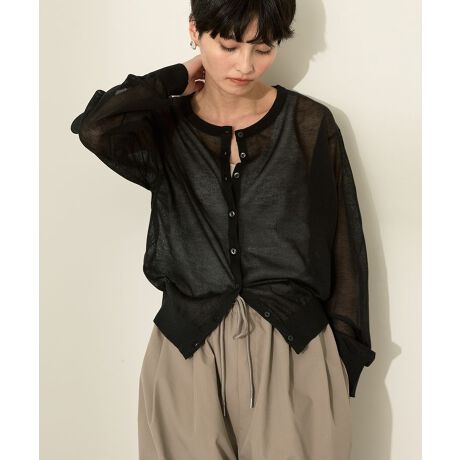 上品な透け感がポイントのシアーニットカーディガン。程よくデコルテが覗くクルーネックに、丸みフォルムが女性らしいデザインです。ゆったりとした着用感で、ごわつかずライトな着心地も嬉しいポイント。インナー次第で幅広いスタイリングが楽しめる夏にぴったりの1枚です。透け感[ややあり]