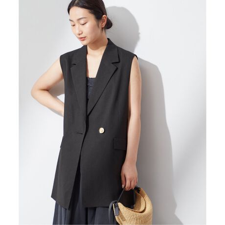 少し長めの着丈が大人な雰囲気の綿麻ベスト。