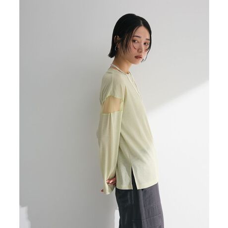 シアー切替長袖プルオーバー