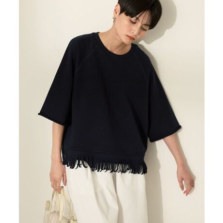 柔らかい裏毛素材で仕立てたラグラン切り替えのプルオーバー。裾に施したフリンジディテールが目を惹くポイントです。袖口はカットオフ仕様でヴィンテージライクな雰囲気も魅力的。オフボディのボックスシルエットで着心地よく、一枚着るだけでこなれたスタイリングを演出するおすすめのアイテムです。